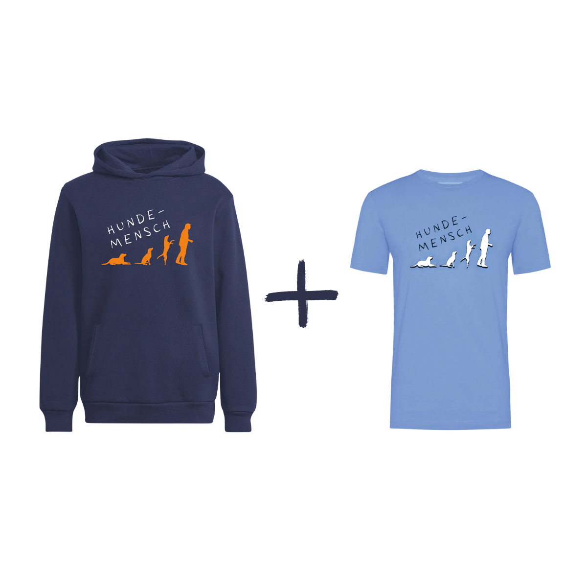 Bundle - Hoodie & T-Shirt "HUNDEMENSCH" Dunkelblau / Azur