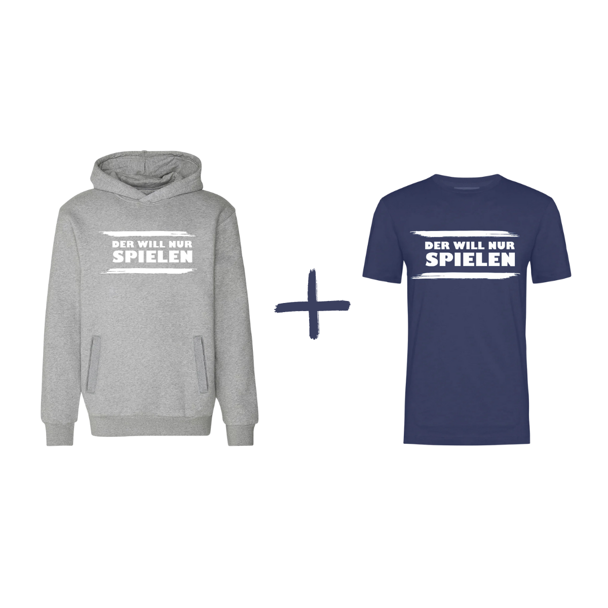 Tour Bundle - Hoodie & T-Shirt "DER WILL NUR SPIELEN!" Grau/Dunkelblau