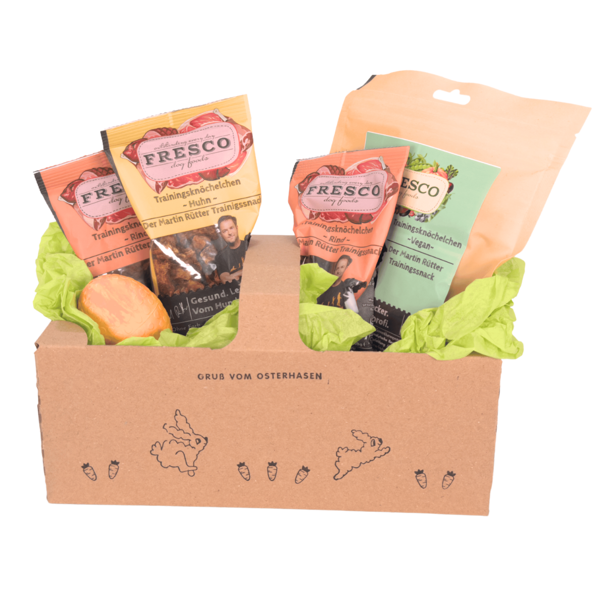 Mach das Osterfest für Deinen Hund zu einem besonderen Erlebnis mit unserem exklusiven Osterspecial! In diesem Set erhältst Du ein Straußenei in Größe und Farbe Deiner Wahl sowie das Snackpaket Vegan.