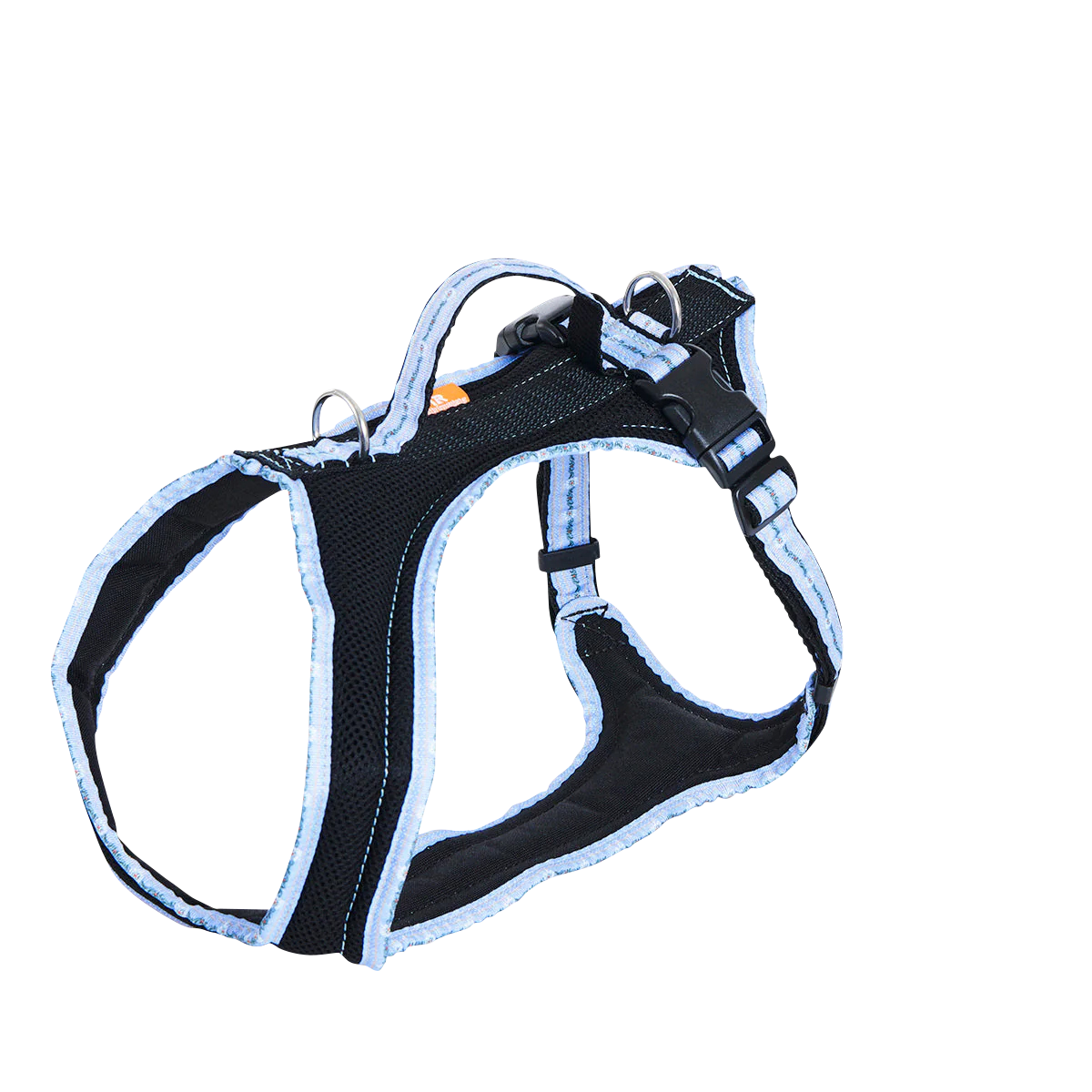 Das Geschirr Standard bietet zwei Leinenringe und einen Griff am Rückenteil, was vielseitige Vorteile in verschiedenen Situationen mit Deinem Hund bietet. Du kannst ihn entweder am vorderen Ring anleinen, um ihn kontrollierter bei Fuß zu führen. Beachte dabei, dass dieser Ring bei Zug an den Halsansatz Druck ausübt und daher nur in entspannten Situationen verwendet werden sollte. Alternativ kannst Du ihn am hinteren Ring anleinen, wodurch Druck auf das Brustbein ausgeübt wird, einen stabilen und weniger empfindlichen Knochen. Dies erlaubt Deinem Hund, in dieser Variante auch einmal zu ziehen.