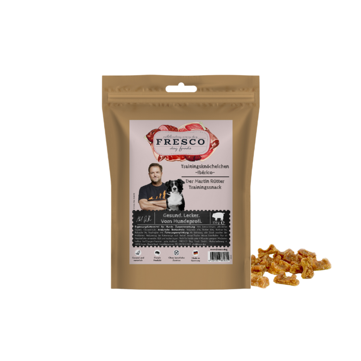 Auch Martin Rütter hat die Trainingsknöchelchen gemeinsam mit seinem Team getestet – mit eindeutigem Ergebnis: „Im Training gibt es nur noch FRESCO Leckerlis!“