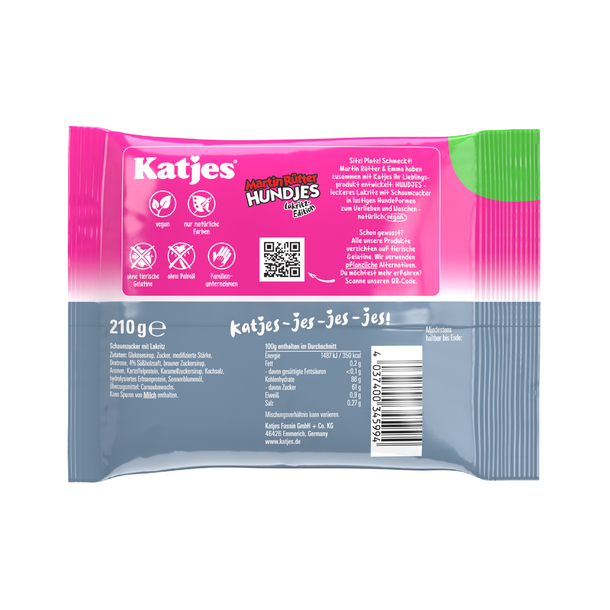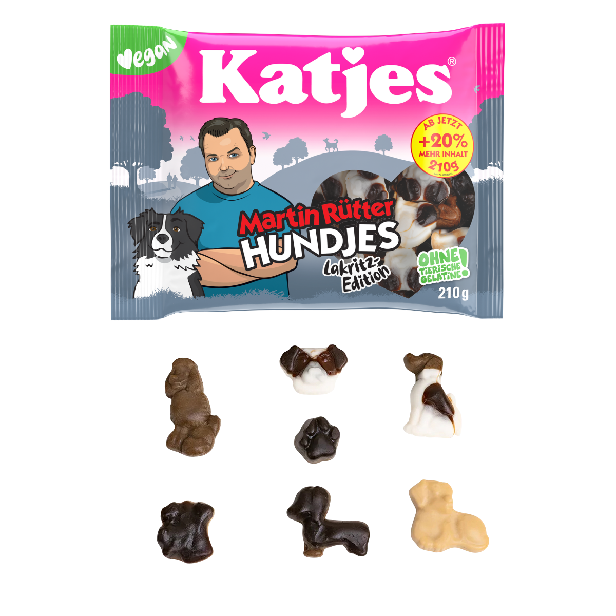 Mit den Hundjes-Lakritz bringt Martin Rütter in Kooperation mit Katjes seinen Lieblingssnack in eine ganz neue Form – buchstäblich! Die niedlichen Hundeformen vereinen würziges Lakritz mit süßem Schaumzucker zu einer einzigartigen Kombination, die Lakritzfans begeistern wird.