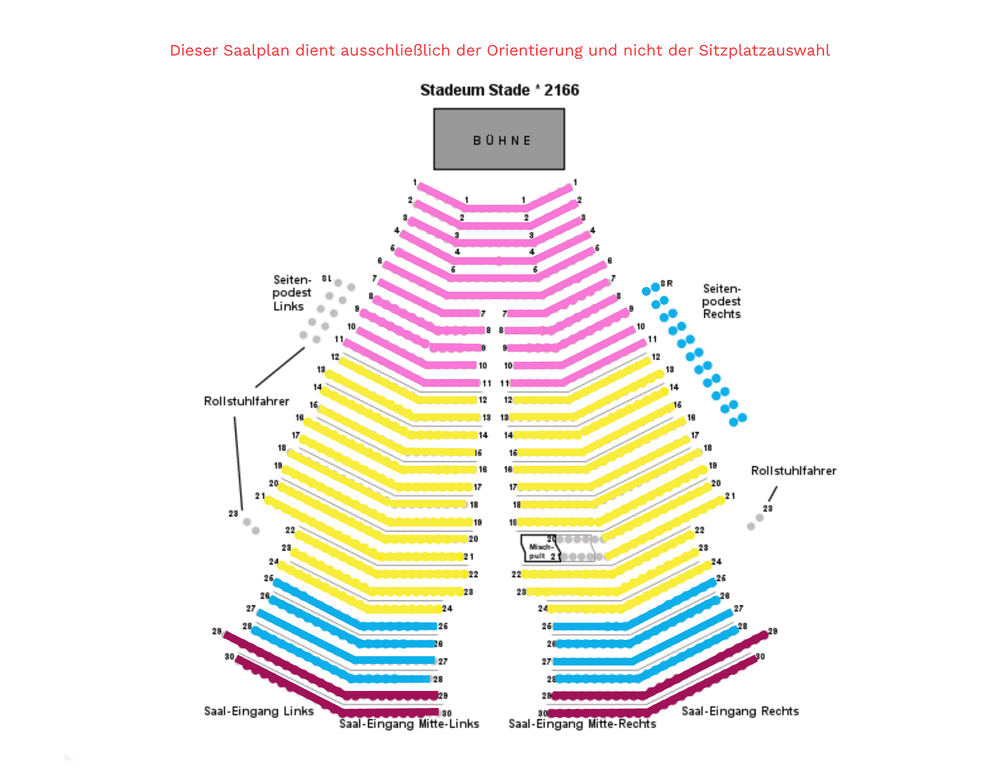 Bitte beachte: Wir können die Buchung erst bestätigen, nachdem wir sie beim Veranstalter angefragt haben. Bei einigen Veranstaltungshallen stehen nur eine begrenzte Anzahl an barrierefreien Plätze zur Verfügung.